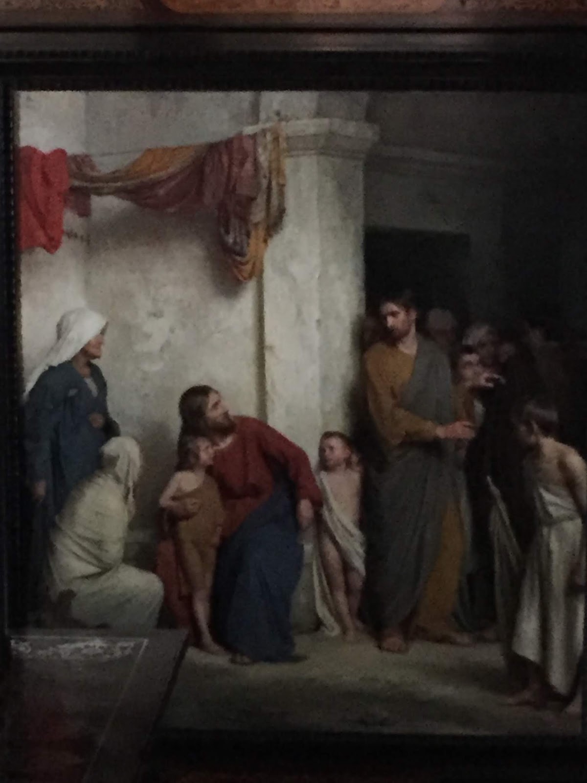 There was no place to sit, to ponder as one looked at these masterpieces and the beauty of them and of the Savior who they all so beautifully expressed. The whole story of the main events of the Savior’s life were there ending with His ascension into heaven after the Resurrection. There was the woman at the well that hangs in so many Relief Society rooms and many others! Oh how I loved seeing them! The originals!! Yet, These spiritually moving paintings were in a walk through and people hurried past barely sending a glance towards these magnificent portrayals of the Savior and His life and death.